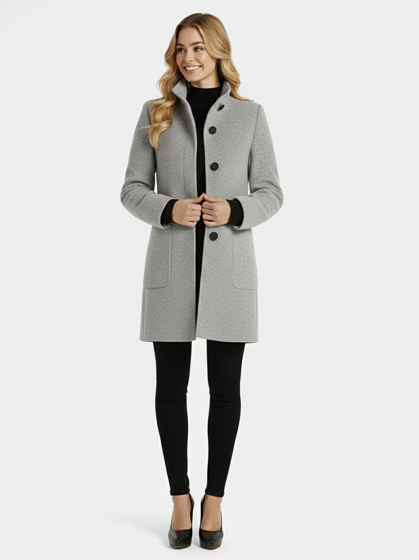 El abrigo AMANDA combina elegancia clásica con funcionalidad moderna. Su corte recto estiliza la figura y el cuello alto aporta un toque sofisticado mientras protege eficazmente del viento. Confeccionado con una mezcla de lana de alta calidad, ofrece una sensación suave al tacto, abrigo excepcional y durabilidad garantizada temporada tras temporada.