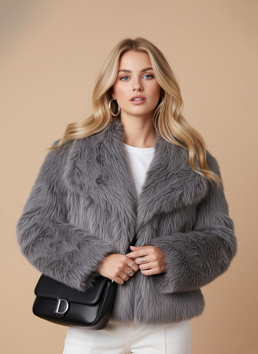 Su pelo sintético suave y de gran calidad ofrece abrigo, comodidad y un acabado ultra chic que no pasa desapercibido.