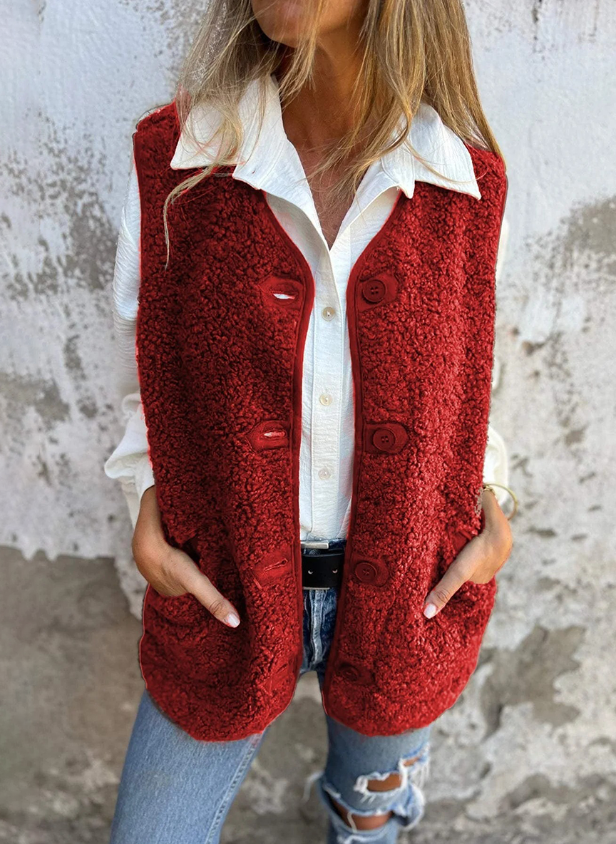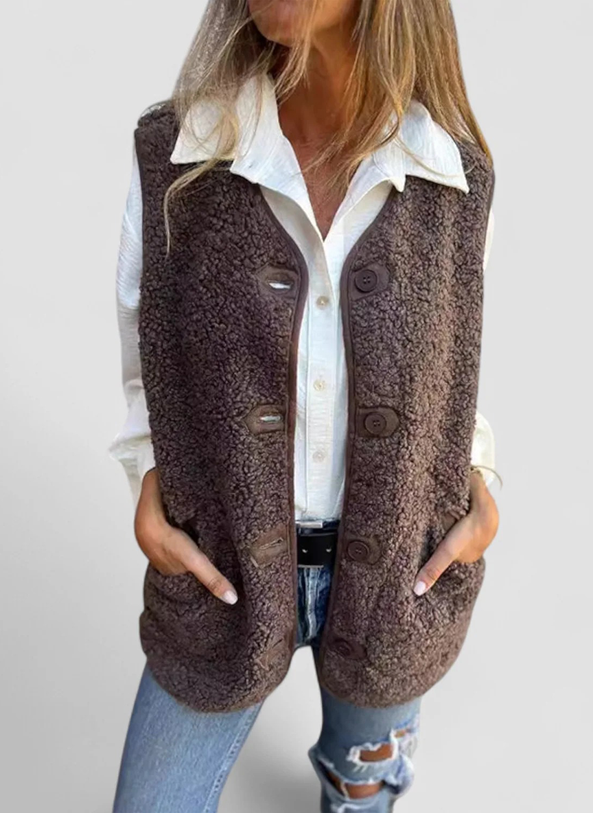 Mantente abrigada y con estilo con el Chaleco Corto Abotonado Mafalda — un esencial sin mangas, suave y confortable, que combina comodidad con elegancia atemporal. Perfecto para capas, brinda calor sin volumen, convirtiéndose en la pieza ideal para looks diarios.