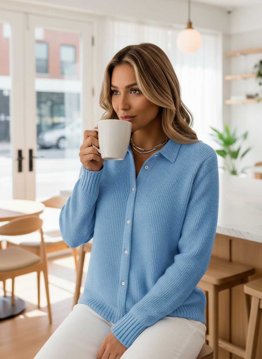 Martina es la chaqueta de punto que combina estilo duradero y bienestar absoluto. Con su cuello delicadamente estructurado, su suave mezcla de algodón y su silueta sutilmente entallada, aporta un toque de elegancia a cualquier conjunto. Llévala con jeans, faldas o vestidos para un look que se siente clásico, seguro y naturalmente chic.